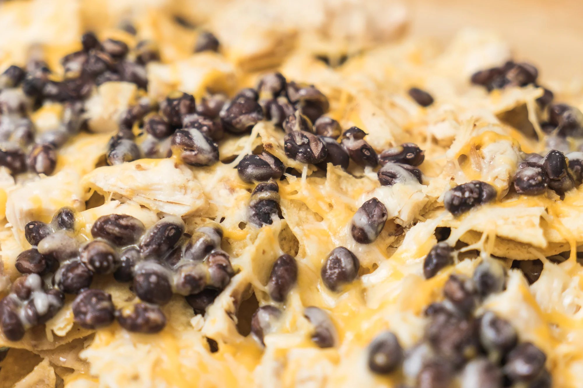 - Use half of the chicken and sprinkle over the chips then half of the beans and cheese and layer over