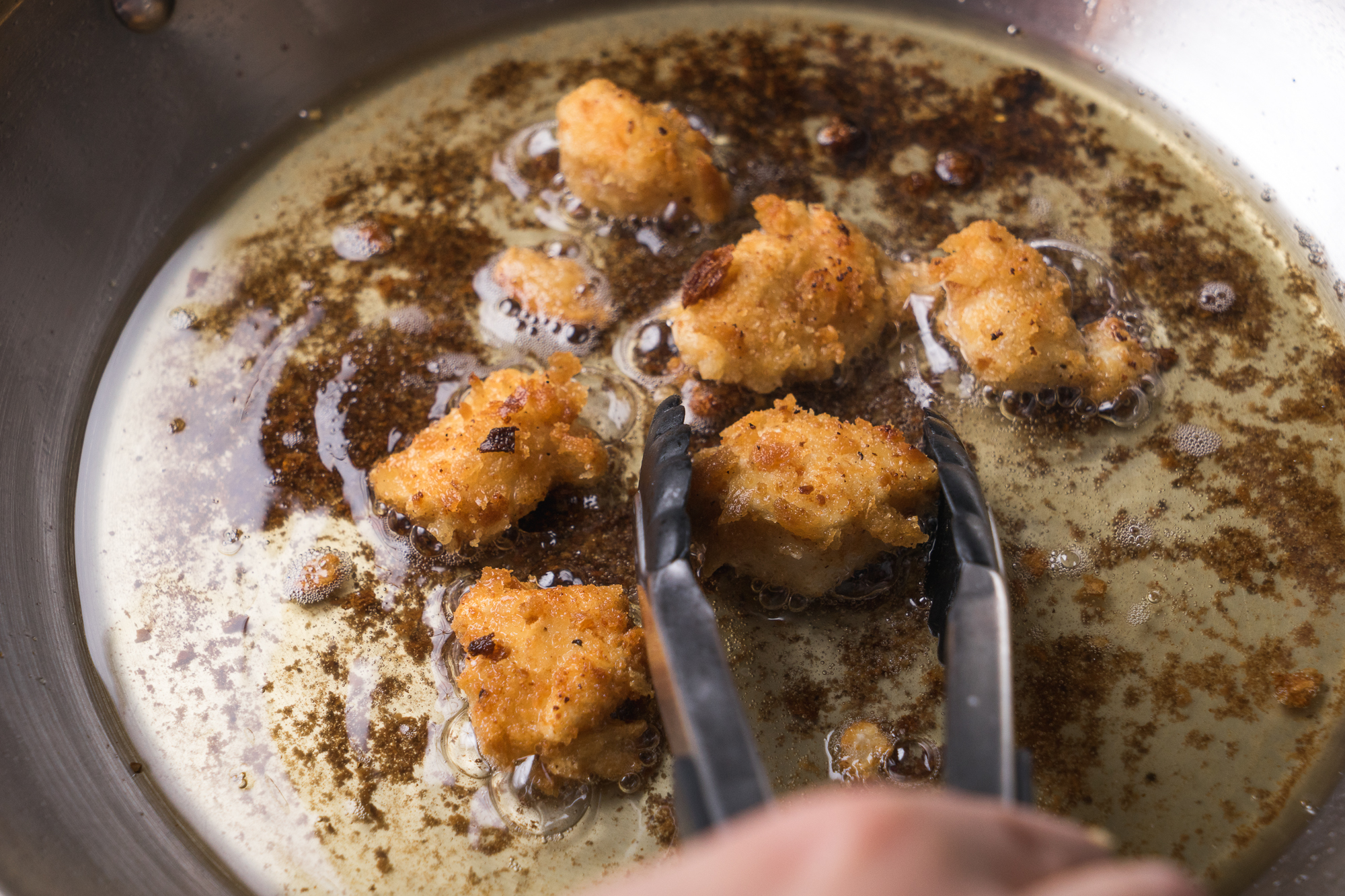 - Since these bites are cut small, they will cook very fast so don't place them in the skillet then walk away. Once you get frying these, they will be done in a flash so have all the chicken coated and a plate ready to go for the cooked chicken before you begin.